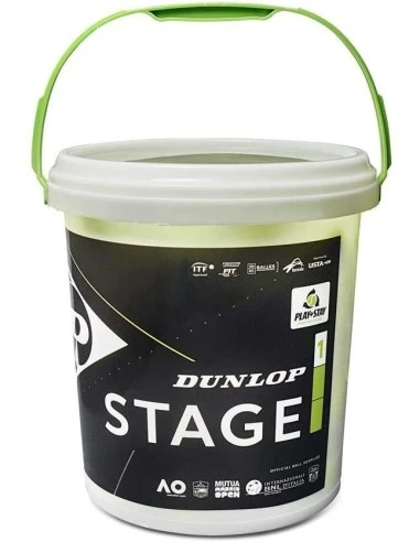 El cubo de pelotas de tenis de baja presión Dunlop Stage 1 o punto verde está pensado para el aprendizaje de los jugadores más jóvenes. Perfecto para escuelas de tenis.