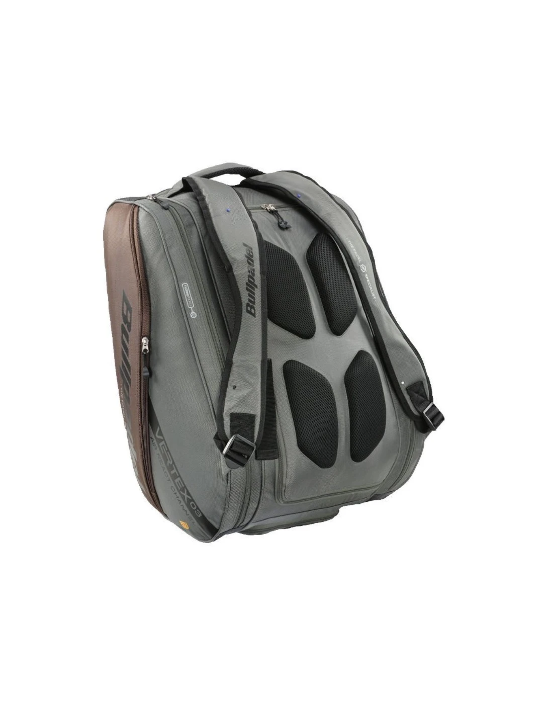 El paletero Bullpadel Vertex BPP-23001 gris cuenta con un espacio amplio para que puedas alojar tus palas de pádel y todo tu material. Es la versión escogida por los jugadores Juan Tello y Fede Chingotto para sus desplazamientos.