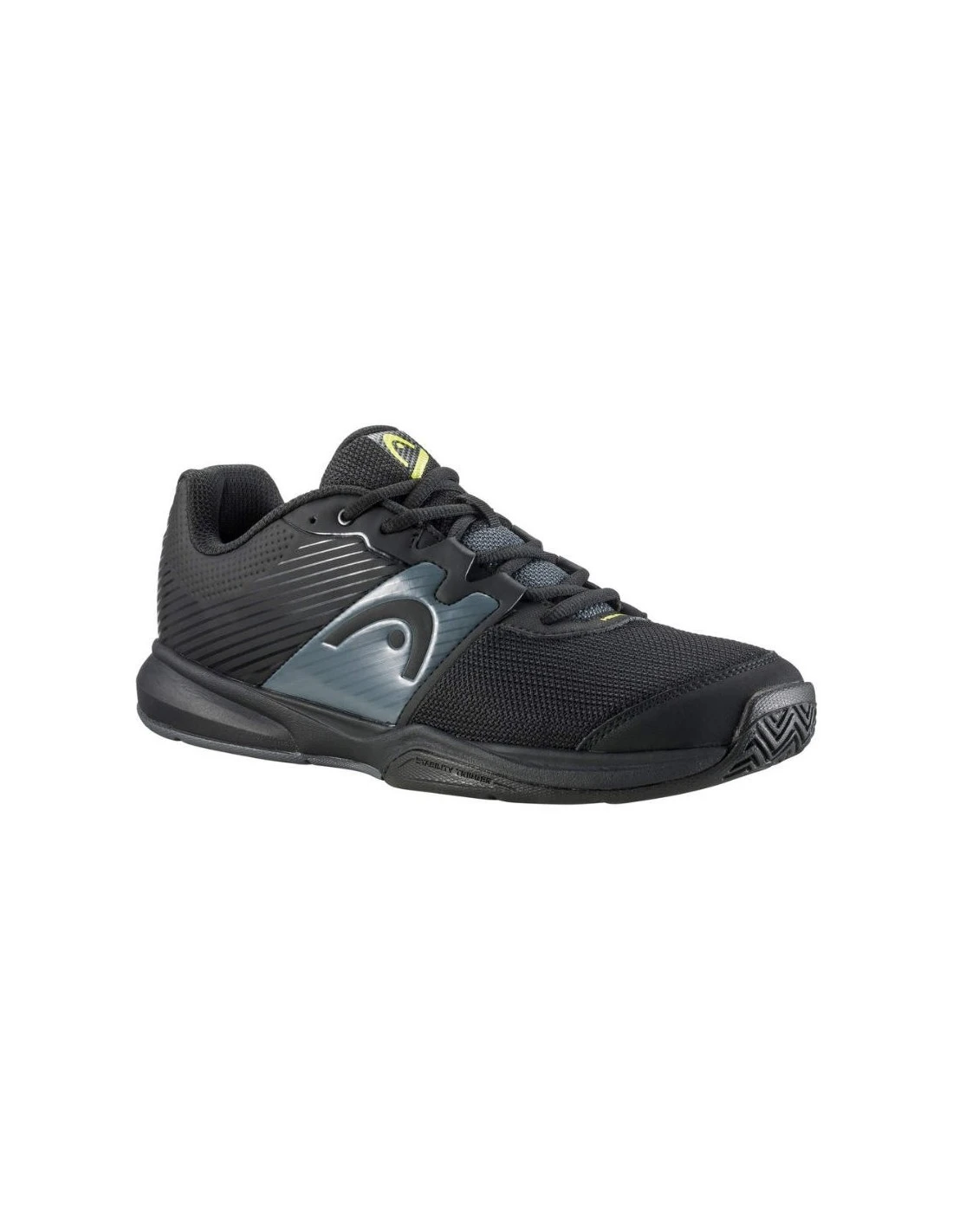 La zapatilla de tenis para hombre, HEAD REVOLT COURT MEN negra se actualiza reduciendo su peso y perfecta para jugadores ocasionales que necesitan un calzado cómodo.